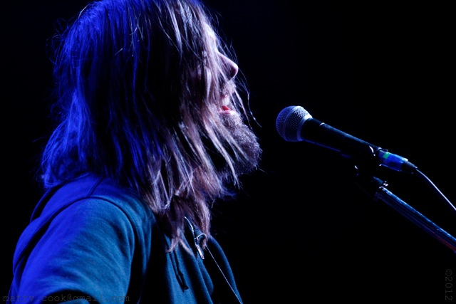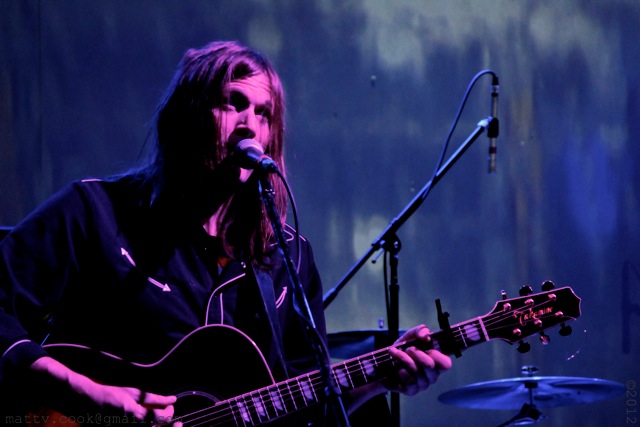 Nearly 45 minutes passed from the time Sheldon’s equipment was torn down to the headlining act hitting the first note. In that time, more than one person in front of the stage asked aloud if Dando had canceled at the last minute. Just as the crowd reached the pinnacle in its restlessness, Dando came stumbling out to the microphone, dirty blonde hair hanging in front of his gaunt face, appearing to have just been woken up by the stage crew. Guitar in hand, he then put his mouth so close to the microphone that his lip movements shifted it on the stand, mumbled something in typical incoherent fashion, and began a set of six acoustic songs. This included, in no great detail, a rendition of Townes Van Zandt’s “Waiting Around to Die,” that appeared on the 2009 covers album Varshons. To be perfectly honest, much of the first few songs could barely be understood due to his proximity with the microphone and his annunciation (or lack thereof).