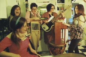 Brock Potucek was nowhere to be found, so a planned performance from South Bitch Diet was replaced by the only half hour in the evening without any kind of music. In his absence, the next band to perform was Lawrence performance art weirdos Metatone. The group is headed up by J Ashley Miller, a local artist and contributing member of the prolific SSION, as well as Pewep in the Formats, and are just as quirky as anything else he has been involved in. Behind the elevated pitch of Miller’s voice and the syncopated plucking of his guitar was a group of musicians (including Mark Smeltzer playing a homemade, one-stringed fiddle) making the experience uniquely odd, and entirely undefinable in the placement of their sound. Metatone was equal parts indie pop, calypso, and folk, the result of which had the floor visibly bowing with each jump of the crowd in reaction to their animated set.
