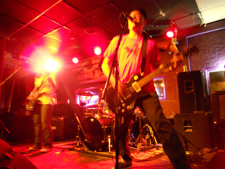 Sitting at a table prior to their performance, and with a cup of hot tea at his side, Hawk explained that he was losing his voice and so their set list that night would largely consist of songs written by Longbottom, Hawk performing the necessary back-up vocals. He seemed rather unfazed upon taking the stage, playing just as hard as he would have otherwise. The band barreled through a set with songs that spanned their discography to date, including the crowd pleaser “You Ignited,” from the 2010 vinyl-only full length Out of Earshot. The band has been gradually unveiling new songs in their recent performances, preparing for the release of a 7″ EP coming out on the same label that released their last effort, as well as the vinyl issue of Ultimate Fakebook’s Electric Kissing Parties. The EP is scheduled for release later in 2011 on Rocketheart Records.